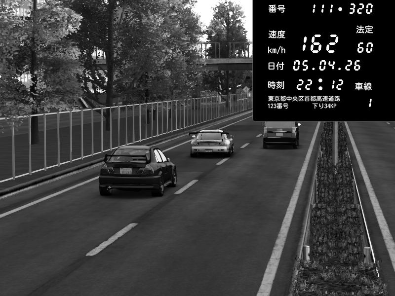 | 2026/04/05 21:47 | C1内回り 竹橋JCT | 128 / 60 km/h | Mitsubishi Lancer Evolution V Wangan Spec | CAPTURE |