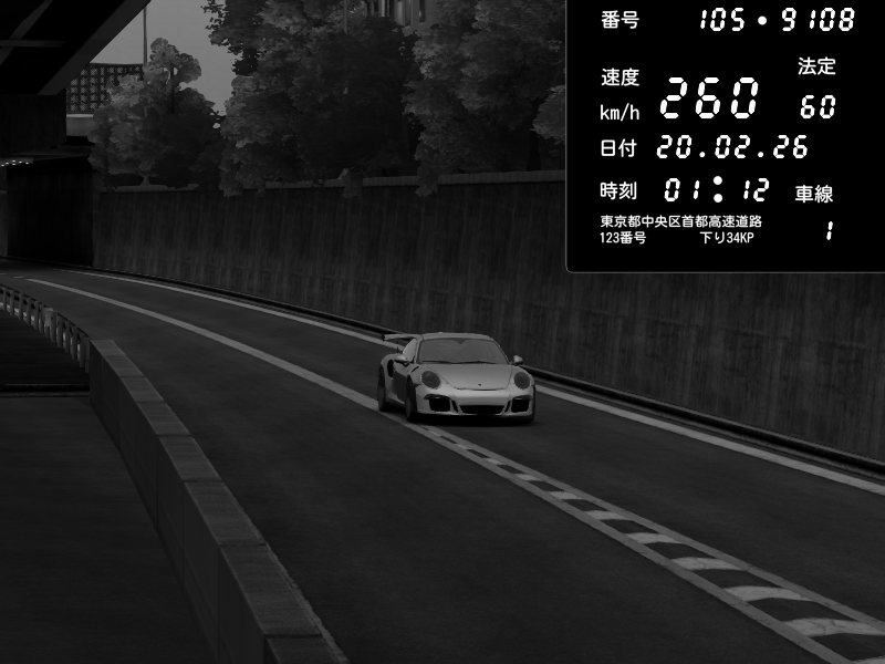 | 2026/02/20 01:12 | C1外回り 京橋 | 260 / 60 km/h | Porsche 911 GT3 RS | CAPTURE |