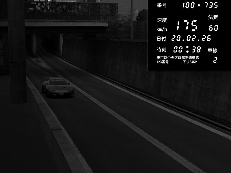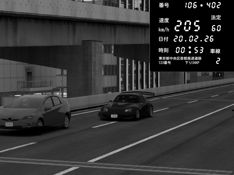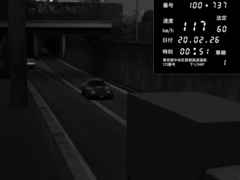 | 2026/02/20 01:01 | 4号下り 代々木 | 170 / 60 km/h | Honda S2000 Turbo GT1 Amuse (AP1) | CAPTURE |