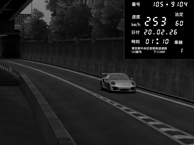 | 2026/02/20 01:10 | C1外回り 京橋 | 253 / 60 km/h | Porsche 911 GT3 RS | CAPTURE |