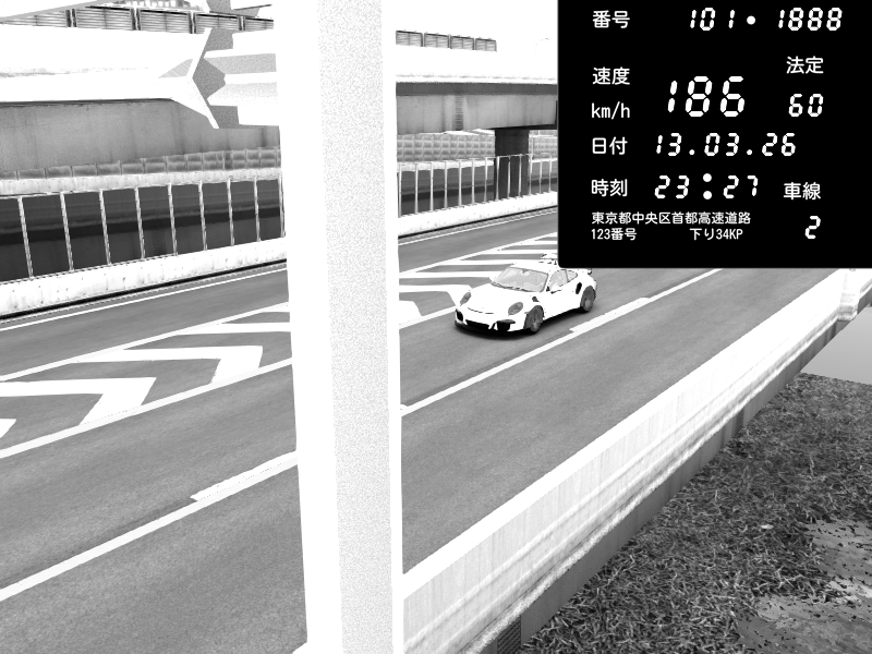 | 2026/03/13 23:27 | C1内回り 竹橋JCT | 186 / 60 km/h | Porsche 911 GT3 RS | CAPTURE |