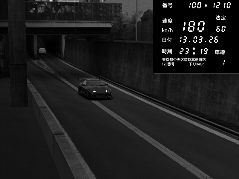 | 2026/03/13 23:19 | C1内回り 京橋 | 180 / 60 km/h | Toyota Supra MKIV Time Attack | CAPTURE |