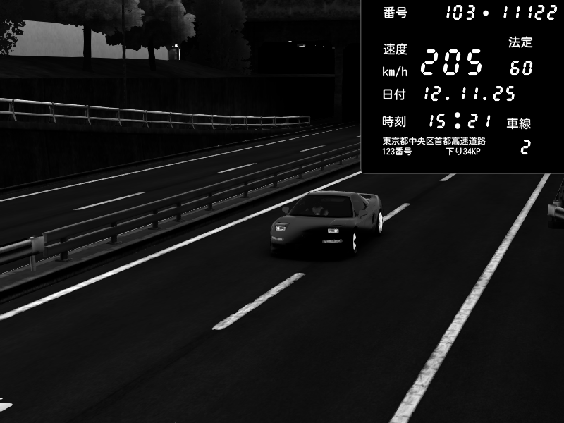| 2025/11/12 15:26 | 4号下り 代々木 | 125 / 60 km/h | Honda NSX [NA1] PVLSX | CAPTURE |