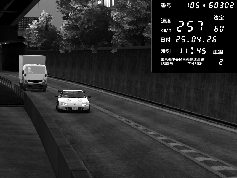 | 2026/04/25 11:45 | C1外回り 京橋 | 257 / 60 km/h | Honda S2000 (AP2 - Legendary) | CAPTURE |