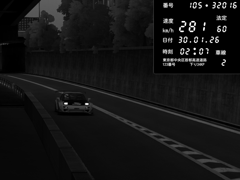 | 2026/01/30 02:07 | C1外回り 京橋 | 281 / 60 km/h | Mazda RX-7 FD3S FEED Afflux GT3 | CAPTURE |