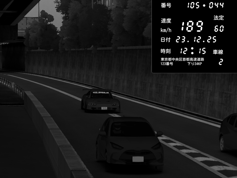 | 2025/12/23 12:15 | C1外回り 京橋 | 189 / 60 km/h | Pit Road M - Mitsubishi GTO Twin Turbo | CAPTURE |