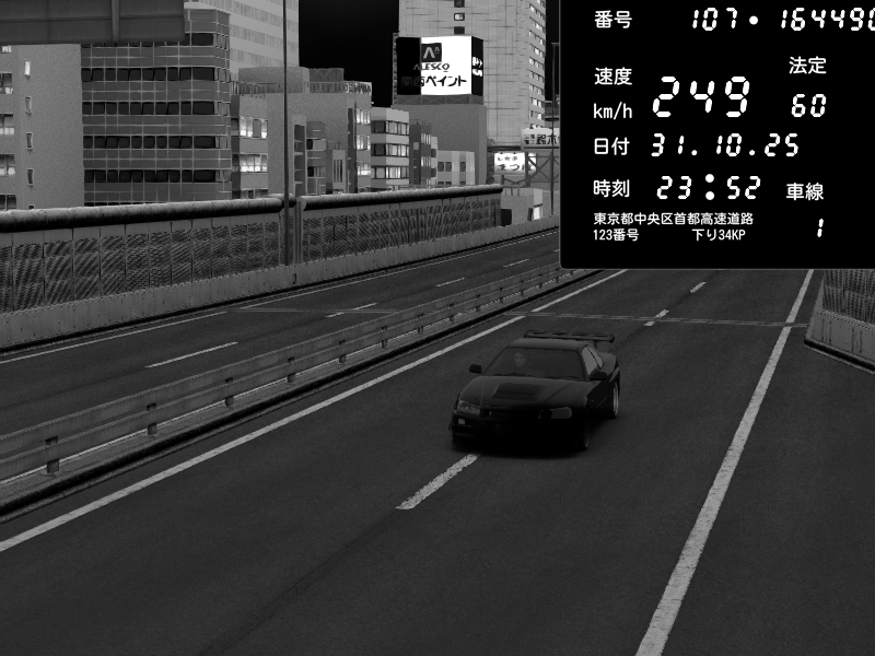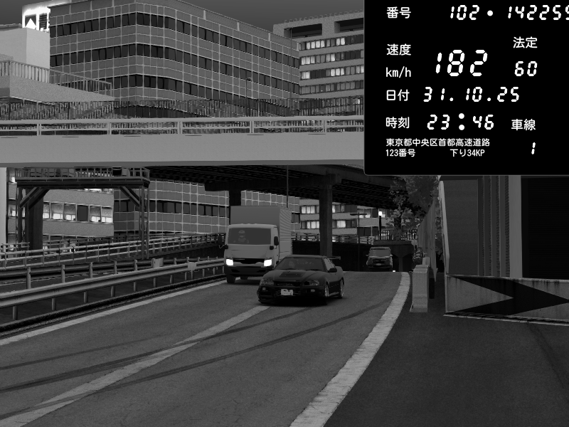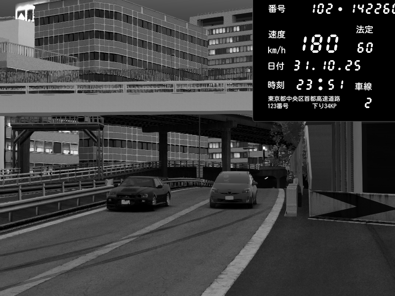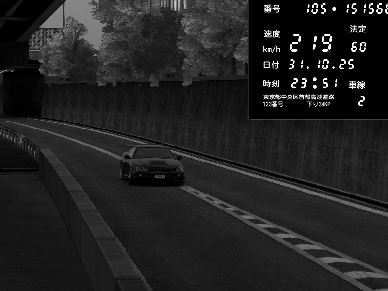 | 2025/10/31 23:46 | C1外回り 新富町 | 182 / 60 km/h | Nissan Skyline GT-R R34 Nismo Omori Factory S1 | CAPTURE |