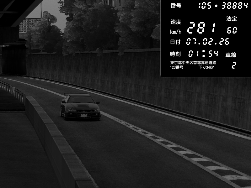 | 2026/02/07 01:54 | C1外回り 新富町 | 183 / 60 km/h | Nissan Skyline GT-R R34 Nismo Omori Factory S1 | CAPTURE |