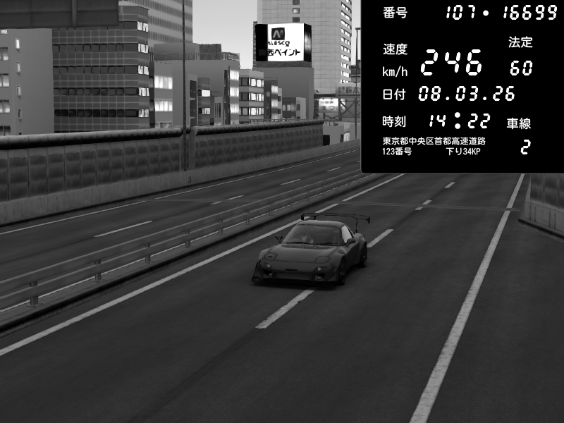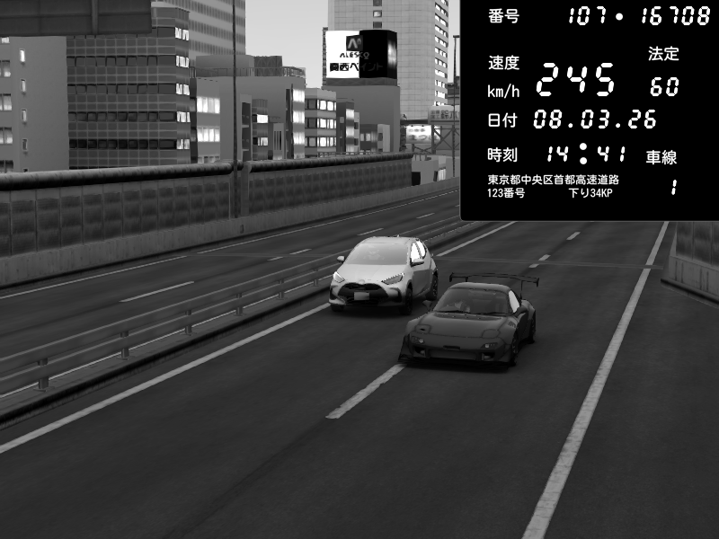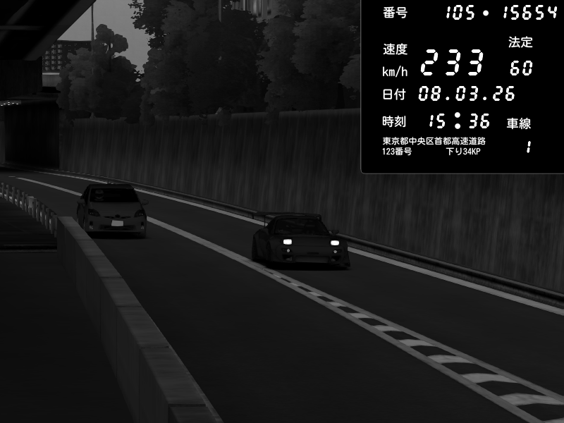 | 2026/03/08 15:36 | C1外回り 京橋 | 233 / 60 km/h | Mazda RX-7 FD3S FEED Afflux GT3 | CAPTURE |
