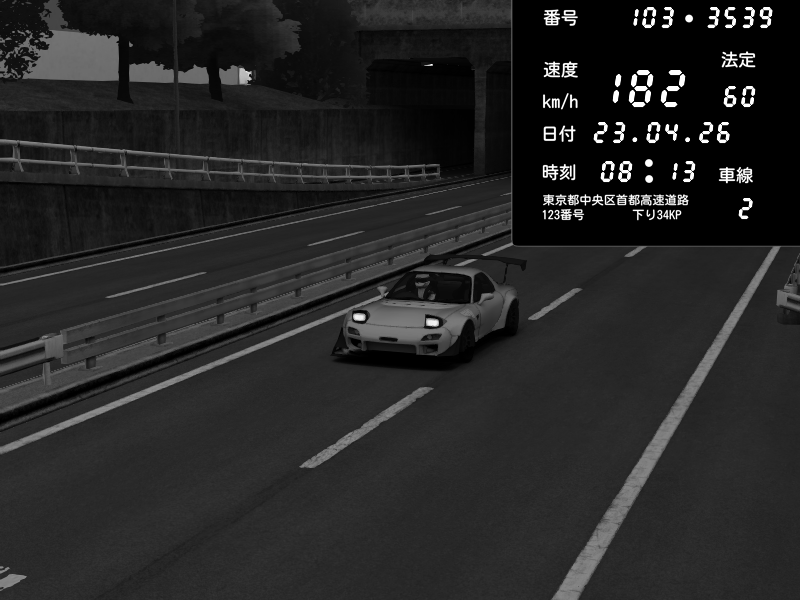 | 2026/04/23 08:14 | C1内回り 竹橋JCT | 197 / 60 km/h | Mazda RX-7 FD3S FEED Afflux GT3 | CAPTURE |