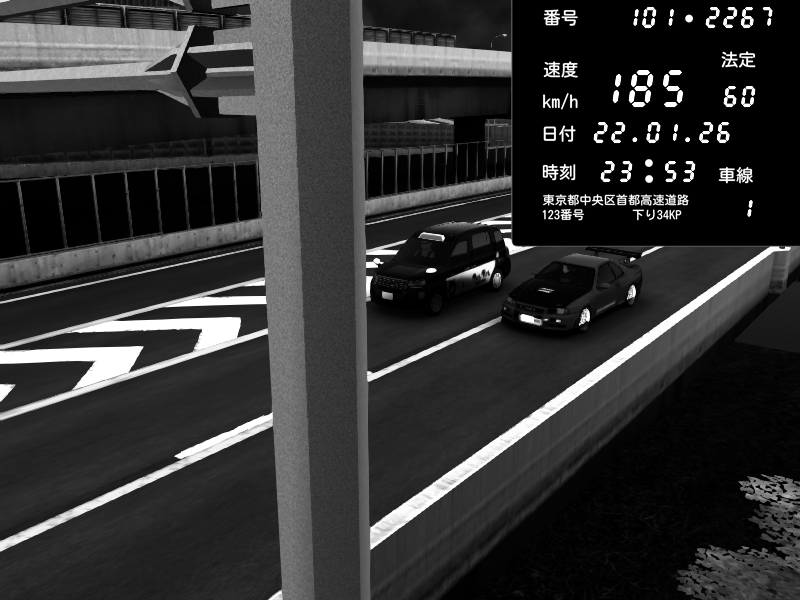| 2026/01/22 23:53 | C1内回り 竹橋JCT | 185 / 60 km/h | Nissan Skyline GT-R R34 Nismo Omori Factory S1 | CAPTURE |