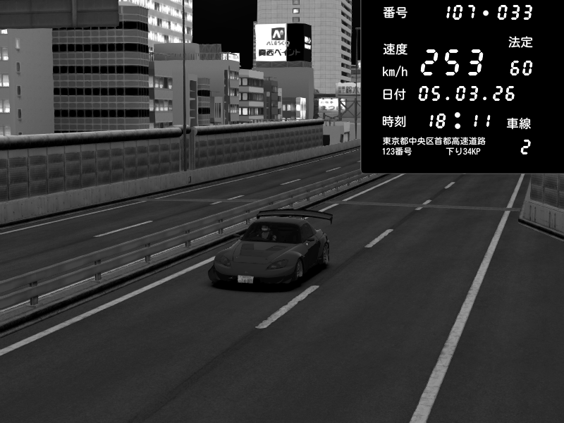 | 2026/03/05 18:11 | C1外回り 芝公園 | 253 / 60 km/h | Honda S2000 Turbo GT1 Amuse (AP1) | CAPTURE |