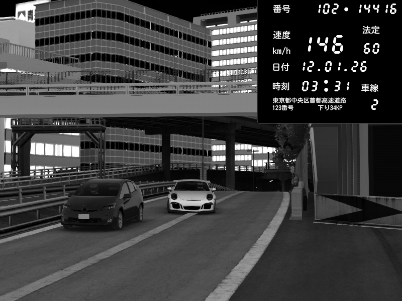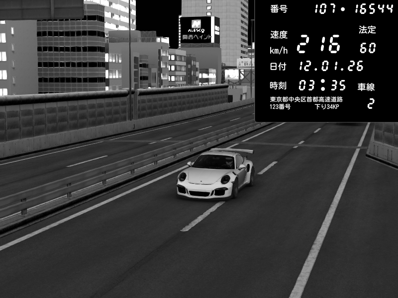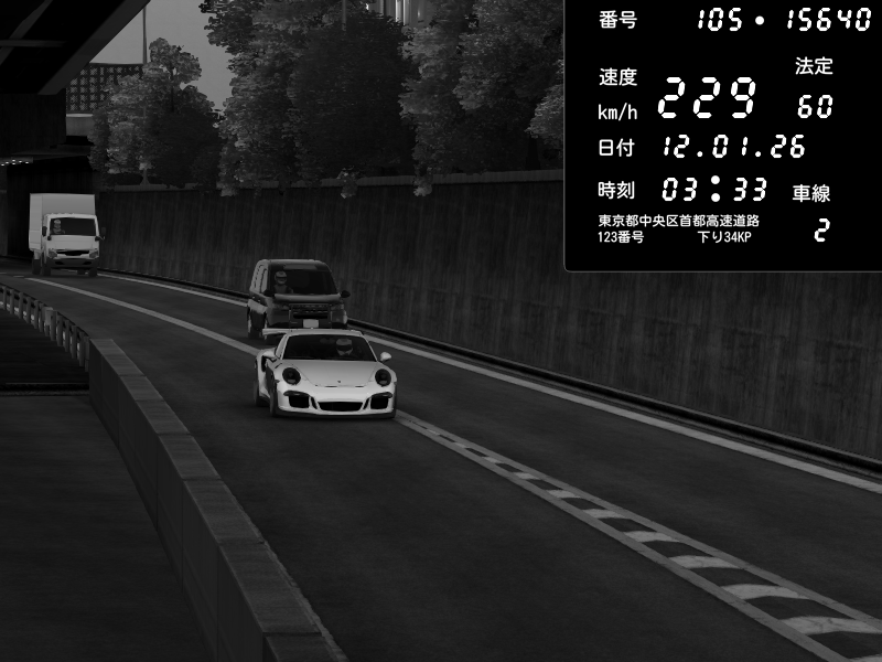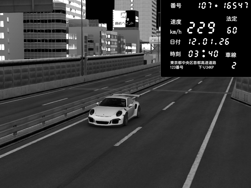 | 2026/01/12 03:38 | C1外回り 京橋 | 206 / 60 km/h | Porsche 911 GT3 RS | CAPTURE |