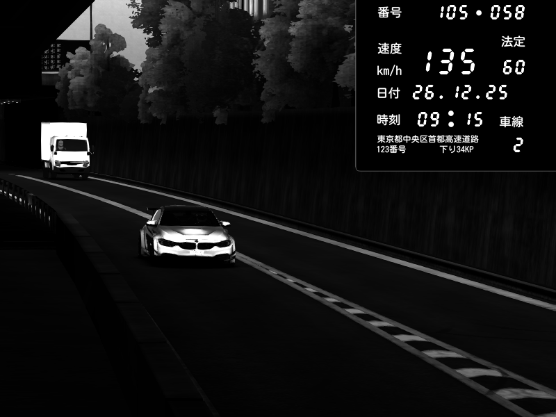 | 2025/12/26 09:15 | C1外回り 新富町 | 119 / 60 km/h | BMW M4 crash.Sp Varis Widebody | CAPTURE |
