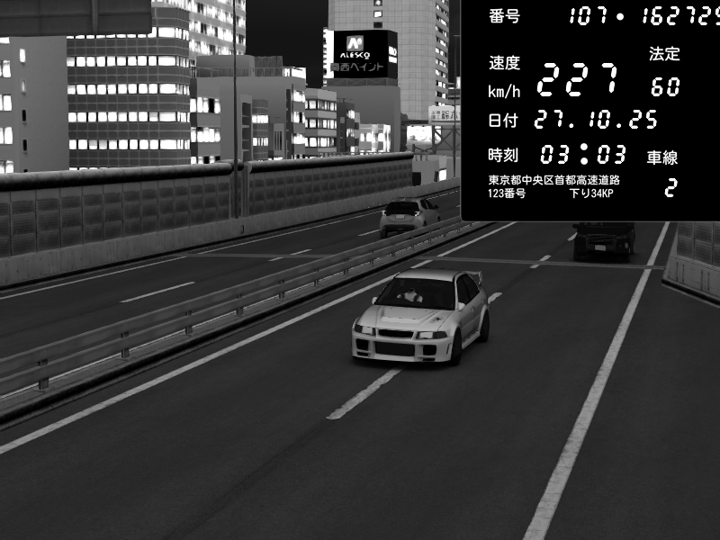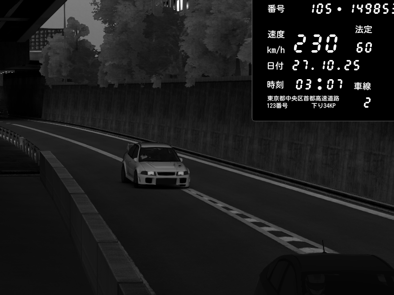 | 2025/10/27 03:03 | C1外回り 芝公園 | 227 / 60 km/h | Mitsubishi Lancer Evolution V Wangan Spec | CAPTURE |