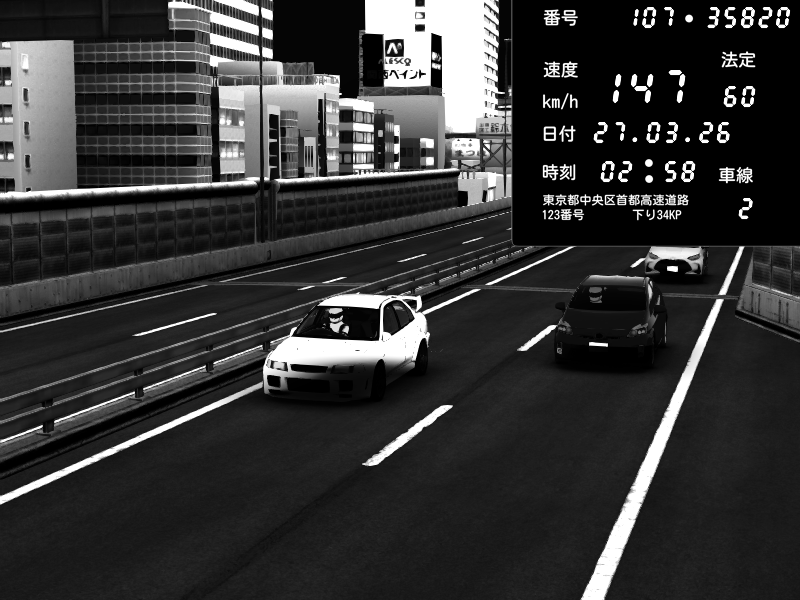 | 2026/03/27 03:26 | C1内回り 銀座 | 152 / 60 km/h | Mitsubishi Lancer Evolution V Wangan Spec | CAPTURE |