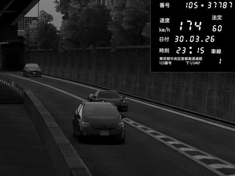 | 2026/03/30 23:15 | C1外回り 京橋 | 174 / 60 km/h | Honda NSX [NA1] PVLSX | CAPTURE |