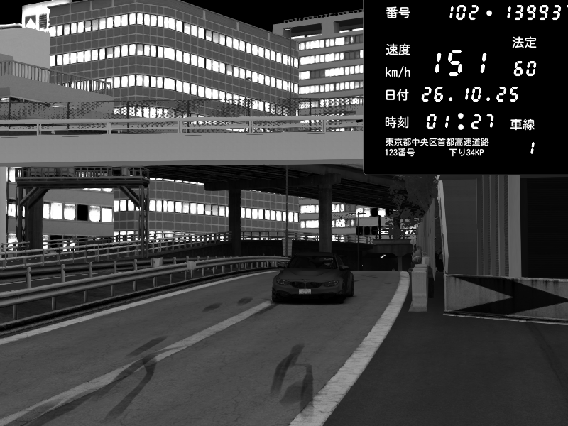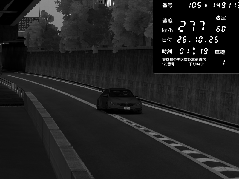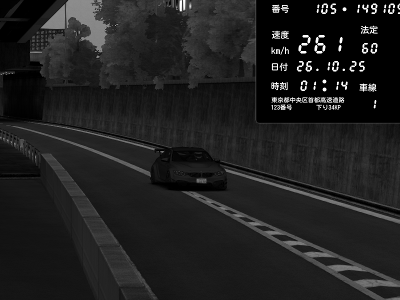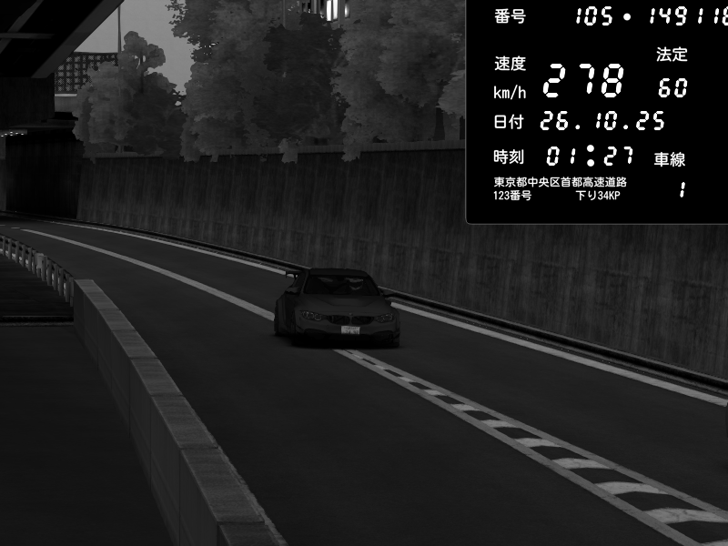 | 2025/10/26 01:50 | C1内回り 銀座 | 209 / 60 km/h | BMW M4 crash.Sp Varis Widebody | CAPTURE |