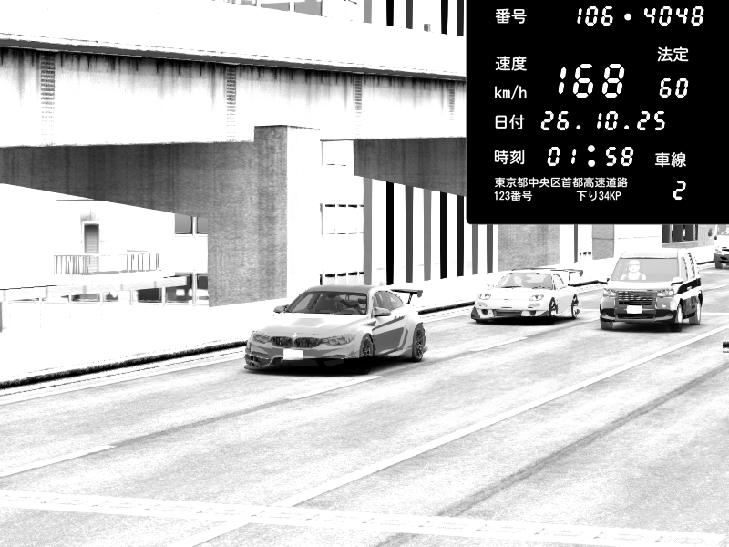 | 2025/10/26 01:54 | C1内回り 京橋 | 179 / 60 km/h | BMW M4 crash.Sp Varis Widebody | CAPTURE |