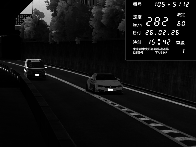 | 2026/02/26 15:42 | C1外回り 京橋 | 282 / 60 km/h | BMW M4 crash.Sp Varis Widebody | CAPTURE |