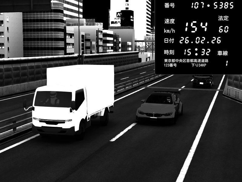 | 2026/02/26 15:30 | C1外回り 新富町 | 132 / 60 km/h | BMW M4 crash.Sp Varis Widebody | CAPTURE |