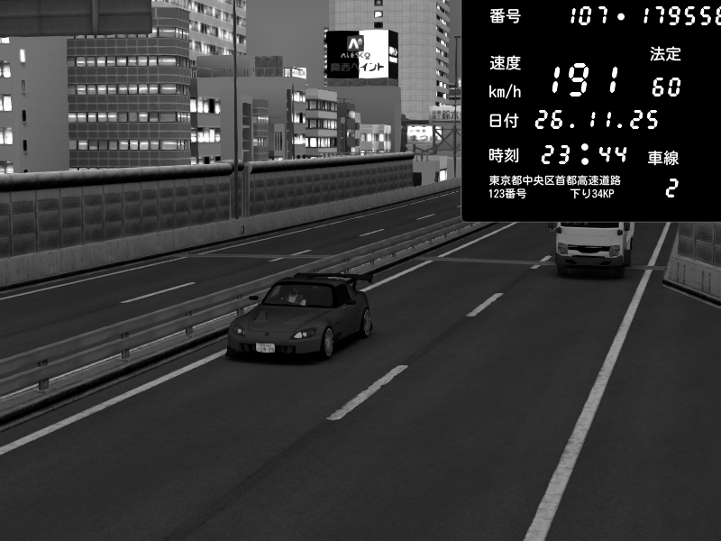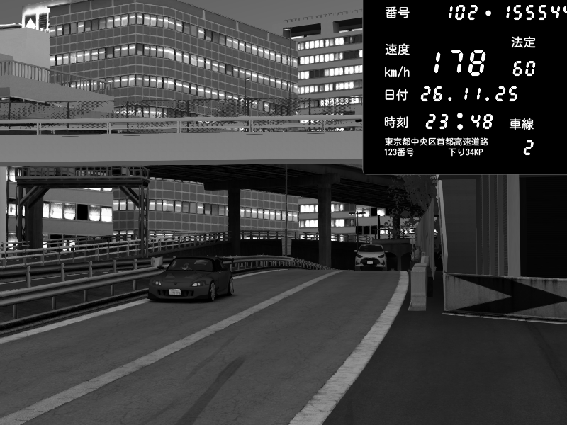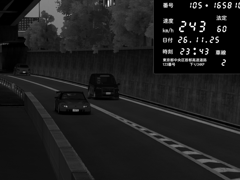 | 2025/11/26 23:43 | C1外回り 新富町 | 184 / 60 km/h | Honda S2000 (AP2 - Legendary) | CAPTURE |