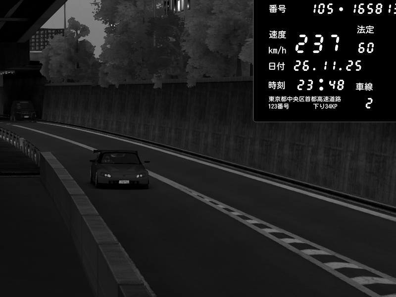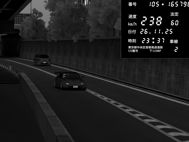 | 2025/11/26 23:48 | C1外回り 京橋 | 237 / 60 km/h | Honda S2000 (AP2 - Legendary) | CAPTURE |