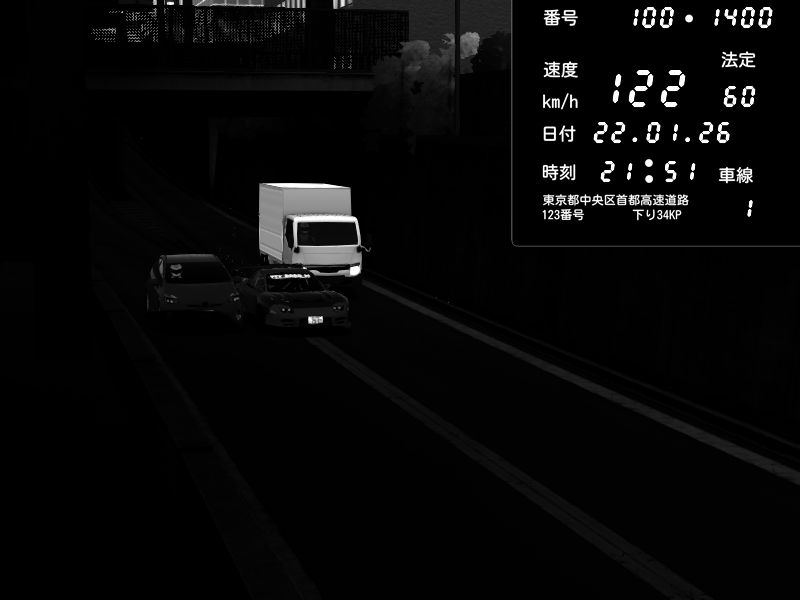 | 2026/01/22 21:51 | C1内回り 京橋 | 122 / 60 km/h | Pit Road M - Mitsubishi GTO Twin Turbo | CAPTURE |