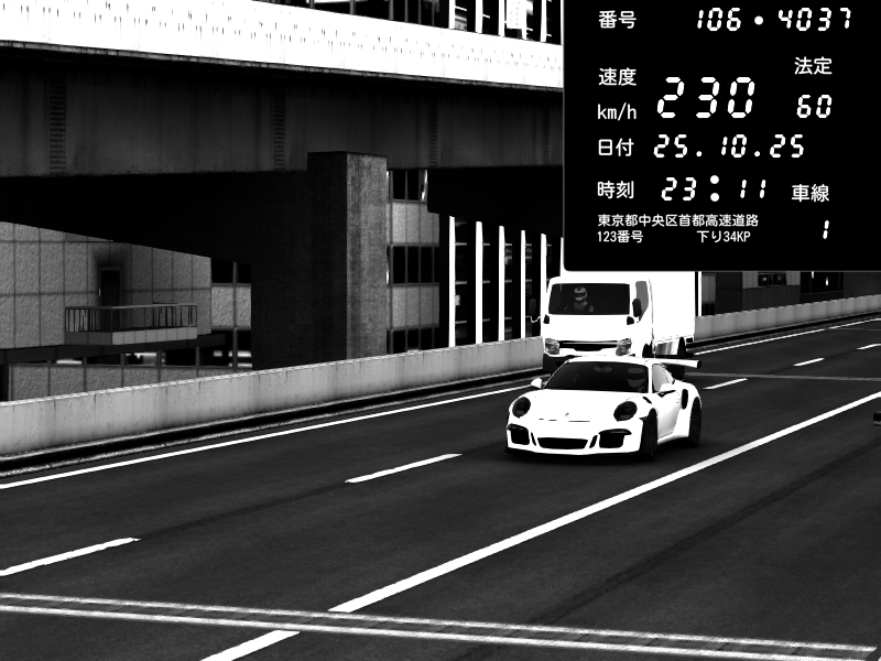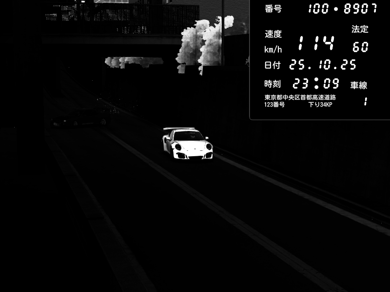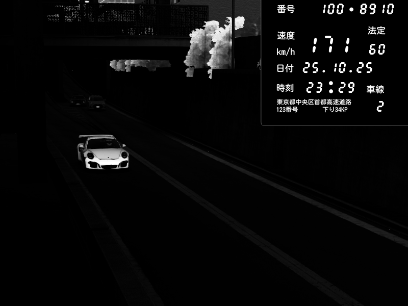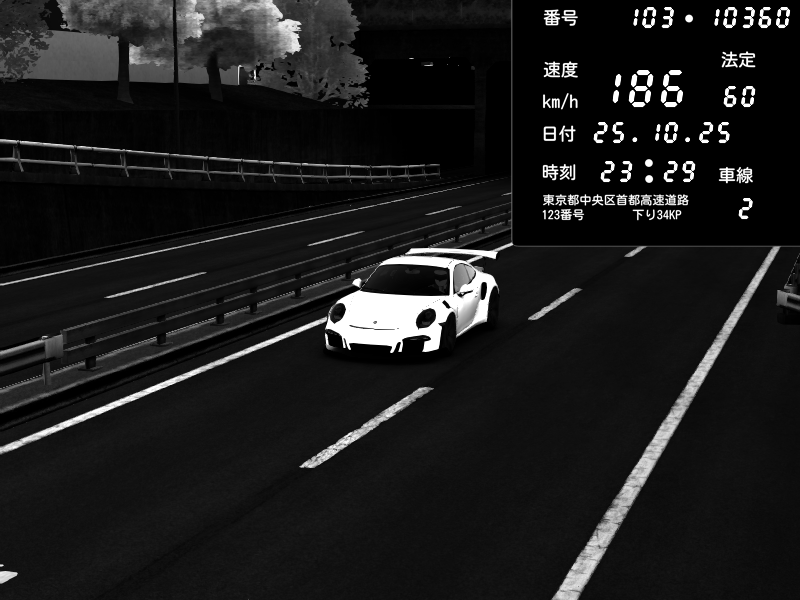 | 2025/10/25 23:52 | K1上り 羽田 | 240 / 60 km/h | Porsche 911 GT3 RS | CAPTURE |