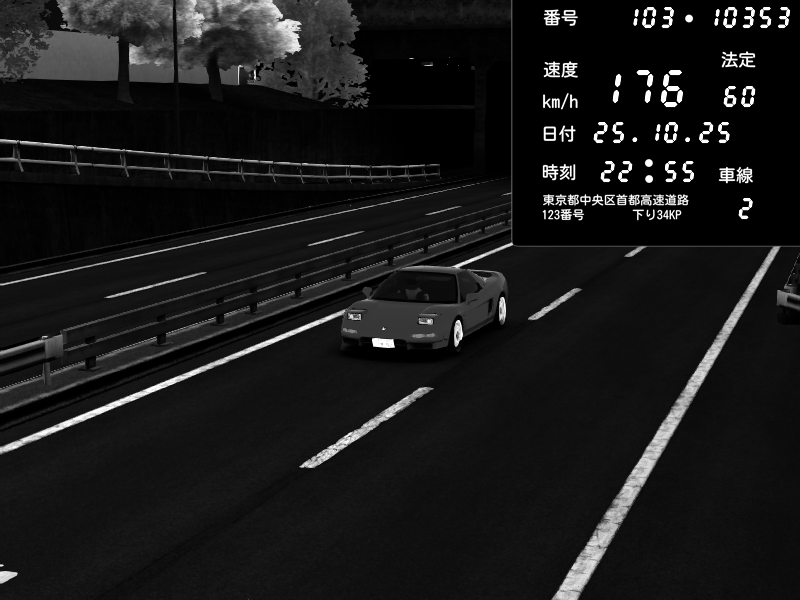 | 2025/10/25 22:55 | C1内回り 銀座 | 176 / 60 km/h | Honda NSX [NA1] PVLSX | CAPTURE |