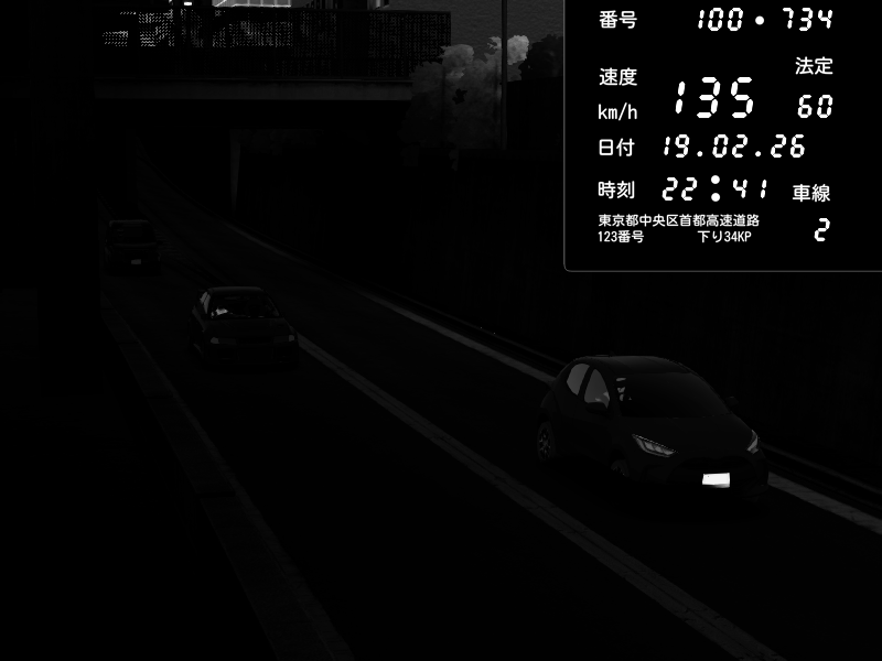 | 2026/02/19 22:57 | 4号下り 代々木 | 100 / 60 km/h | Pit Road M - Mitsubishi GTO Twin Turbo | CAPTURE |