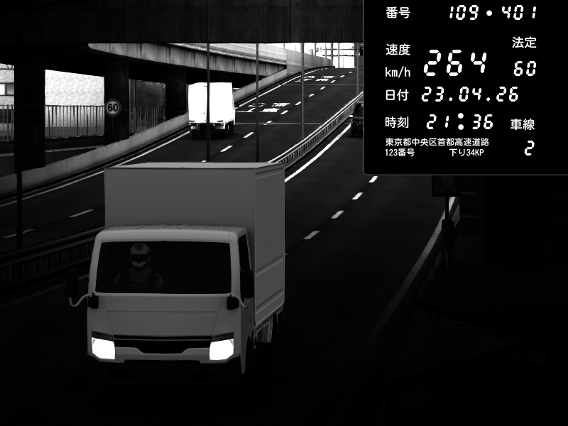 | 2026/04/23 21:38 | K1上り 羽田 | 264 / 60 km/h | BMW M4 crash.Sp Varis Widebody | CAPTURE |