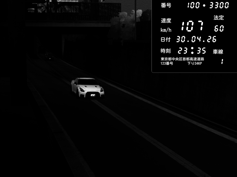 | 2026/04/30 23:35 | C1ε εγ δΊ¬ζ© | 107 / 60 km/h | Nissan GT-R NISMO 2017 | CAPTURE |