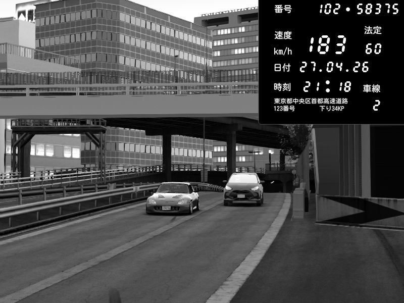 | 2026/04/27 21:18 | C1ε€εγ δΊ¬ζ© | 266 / 60 km/h | Honda S2000 (AP2 - Legendary) | CAPTURE |