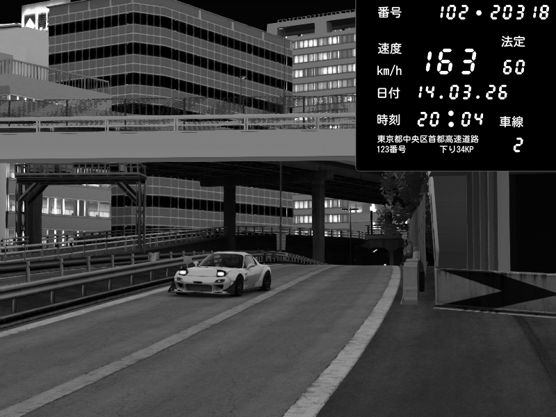 | 2026/03/14 20:04 | C1外回り 新富町 | 163 / 60 km/h | Mazda RX-7 FD3S FEED Afflux GT3 | CAPTURE |