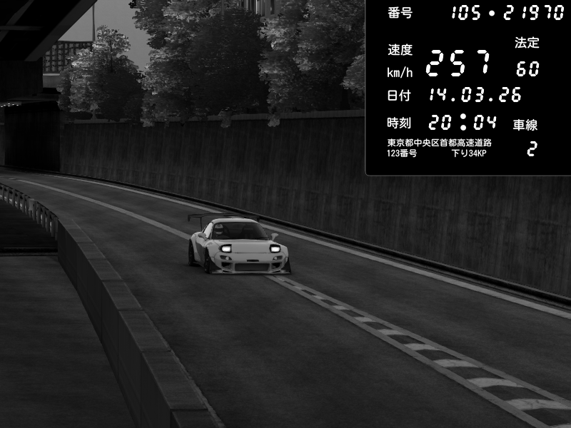 | 2026/03/14 20:04 | C1外回り 京橋 | 257 / 60 km/h | Mazda RX-7 FD3S FEED Afflux GT3 | CAPTURE |