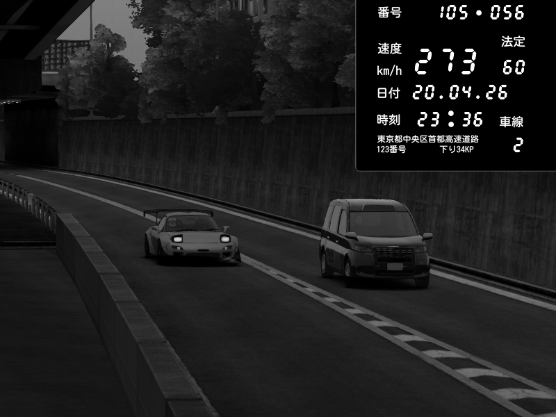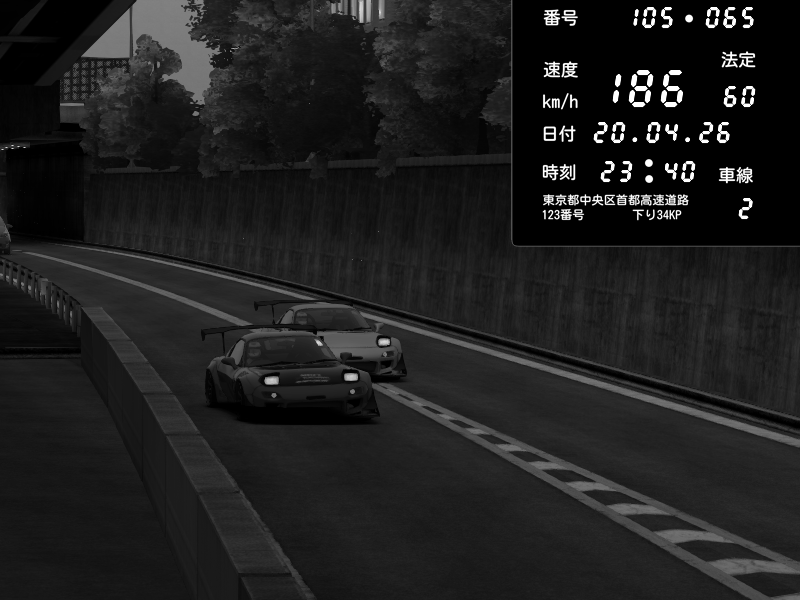 | 2026/04/20 23:40 | C1外回り 京橋 | 186 / 60 km/h | Mazda RX-7 FD3S FEED Afflux GT3 | CAPTURE |
