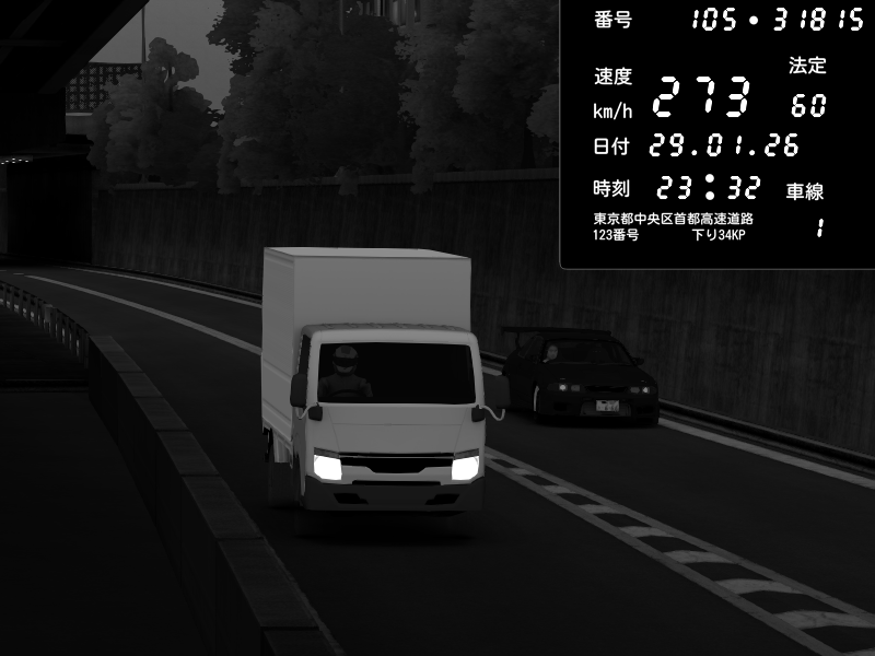 | 2026/01/29 23:32 | C1外回り 京橋 | 273 / 60 km/h | Nissan Skyline GTR R33 (S3 - Wangan) | CAPTURE |