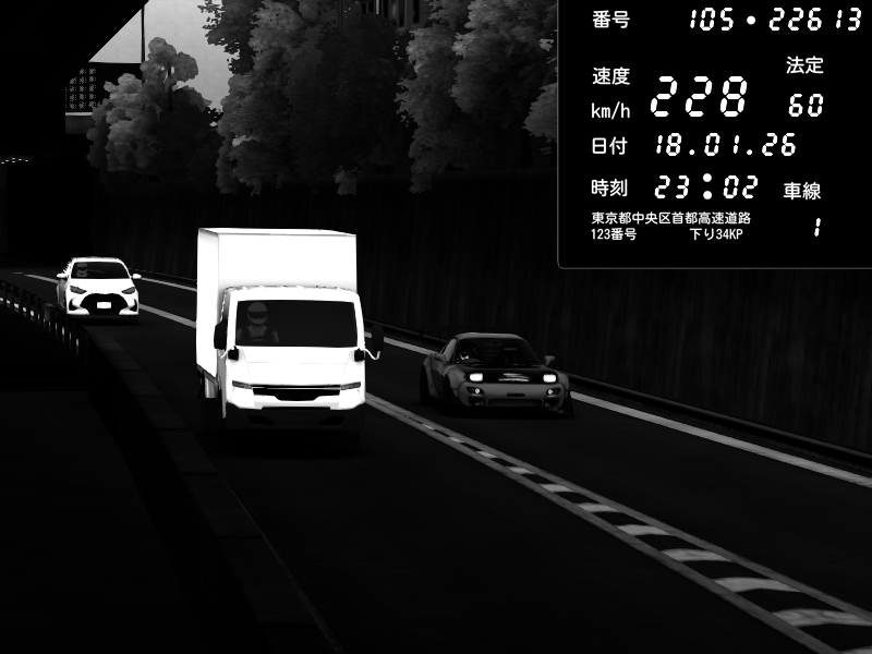 | 2026/01/18 23:02 | C1外回り 京橋 | 228 / 60 km/h | Mazda RX-7 FD3S FEED Afflux GT3 | CAPTURE |