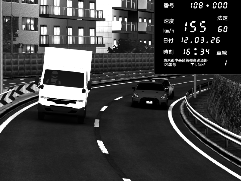 | 2026/03/12 16:31 | C1内回り 竹橋JCT | 147 / 60 km/h | Nissan GT-R NISMO 2017 | CAPTURE |