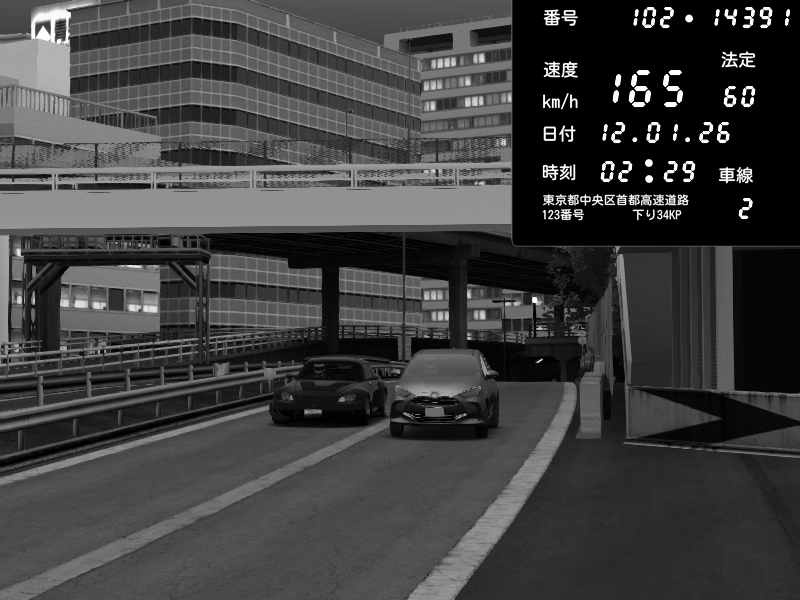 | 2026/01/12 02:26 | C1外回り 芝公園 | 222 / 60 km/h | Honda S2000 Turbo GT1 Amuse (AP1) | CAPTURE |
