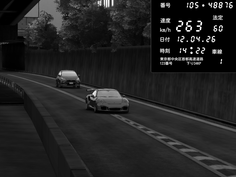 | 2026/04/12 14:22 | C1外回り 京橋 | 263 / 60 km/h | Porsche 911 GT3 RS | CAPTURE |