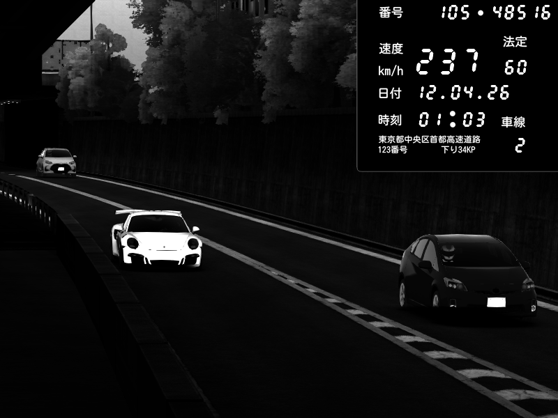 | 2026/04/12 01:03 | C1外回り 京橋 | 237 / 60 km/h | Porsche 911 GT3 RS | CAPTURE |