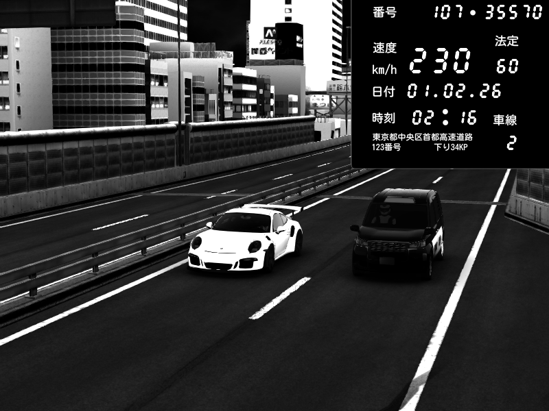 | 2026/02/01 02:03 | C1外回り 新富町 | 145 / 60 km/h | Porsche 911 GT3 RS | CAPTURE |