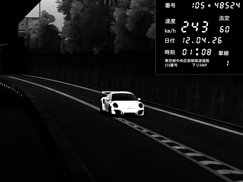 | 2026/04/12 01:08 | C1外回り 京橋 | 243 / 60 km/h | Porsche 911 GT3 RS | CAPTURE |
