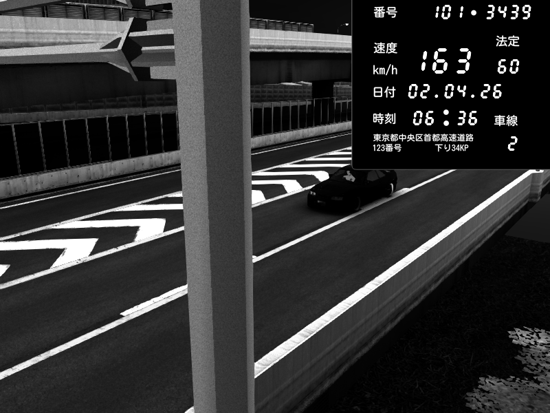 | 2026/04/02 06:36 | C1内回り 竹橋JCT | 163 / 60 km/h | Nissan Skyline GTR R33 (S3 - Wangan) | CAPTURE |