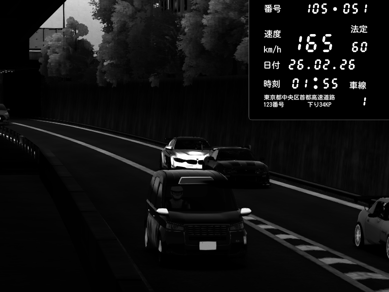 | 2026/02/26 01:55 | C1外回り 京橋 | 165 / 60 km/h | Toyota Supra MKIV Time Attack | CAPTURE |