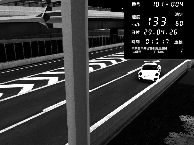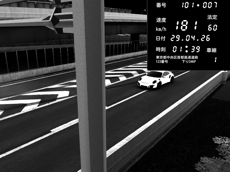 | 2026/04/29 01:18 | C1内回り 竹橋JCT | 133 / 60 km/h | Porsche 911 GT3 RS | CAPTURE |