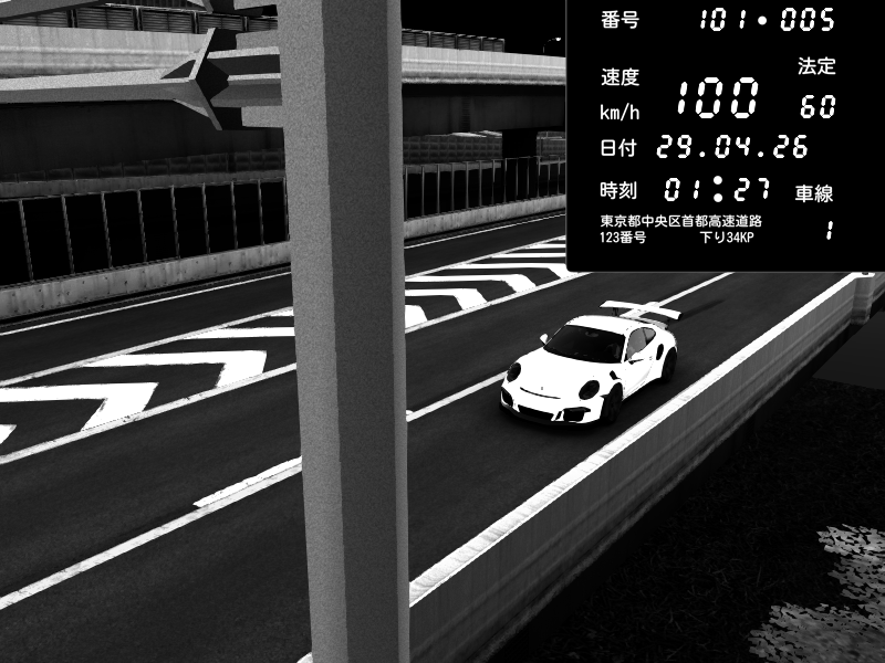 | 2026/04/29 01:27 | C1内回り 竹橋JCT | 100 / 60 km/h | Porsche 911 GT3 RS | CAPTURE |