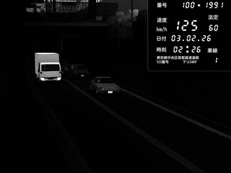 | 2026/02/03 02:26 | C1内回り 京橋 | 125 / 60 km/h | Honda S2000 (AP2 - Legendary) | CAPTURE |